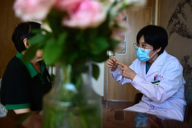 2022年9月2日,河北滄州市人民醫(yī)院安寧療護科主任郭艷汝為新來的一位患者進行心理疏導。王民攝
