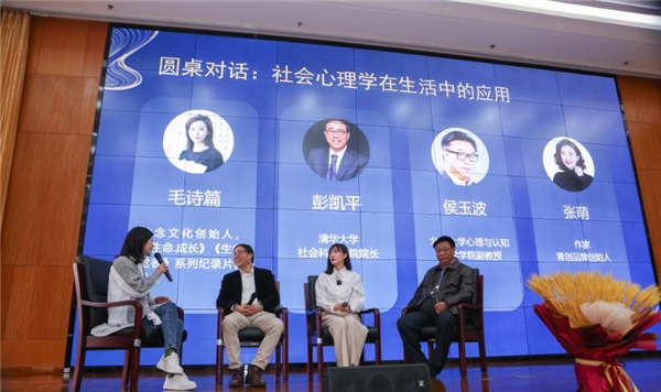 在此念文化創(chuàng)始人、《生命.成長》《生命.覺者》系列紀錄片出品人毛詩篇的主持下,清華大學社會科學學院院長彭凱平,北京大學心理與認知科學學院副教授侯玉波,作家、青創(chuàng)品牌創(chuàng)始人張萌展開圓桌對話。