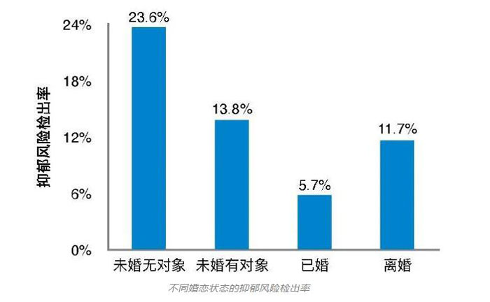婚戀狀態(tài)的分析同樣顯示了家庭內(nèi)外支持的重要性。在各類不同婚戀狀態(tài)群體中,已婚群體的抑郁風險最低,未婚無對象群體的抑郁風險最高,抑郁風險檢出率(23.6%)遠高于已婚群體(5.7%)。雖然其中也疊加了一些年齡因素的影響,但仍顯示了擁有親密關(guān)系的支持對于心理健康的保護作用。從這一角度來說,促進青年人擁有穩(wěn)定和諧的婚戀關(guān)系、促進婚姻家庭和諧,對人們的心理健康具有重要的價值。
