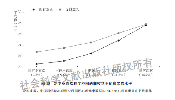對(duì)于高校學(xué)生,影響人生意義感的主要因素是對(duì)學(xué)校和專業(yè)的喜愛,報(bào)告顯示,高校學(xué)生對(duì)自己專業(yè)和學(xué)校的喜歡程度越高,人生意義的擁有和尋求水平也越高。一方面可能是具有明確人生意義和積極尋找人生意義的學(xué)生會(huì)努力進(jìn)入自己喜歡的學(xué)校和專業(yè),體現(xiàn)出人生意義感對(duì)學(xué)業(yè)的促進(jìn)作用;而另一方面,可能是對(duì)學(xué)校和專業(yè)的喜愛讓學(xué)生更加投入和歸屬,從而找到了人生意義。