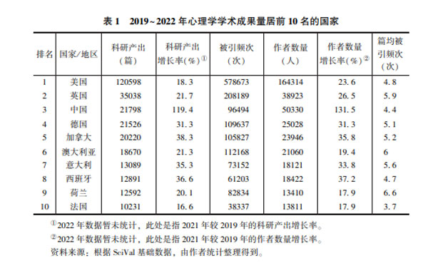 中國在心理學(xué)和心理健康研究領(lǐng)域整體實(shí)力居世界第三