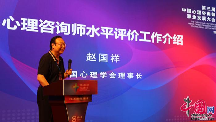 9月14日,在第三屆中國心理咨詢師職業(yè)發(fā)展大會上,大會聯(lián)合主席、中國心理學(xué)會理事長趙國祥介紹“心理咨詢師水平評價工作”。 攝影 中國網(wǎng)心理中國記者 蘇向東