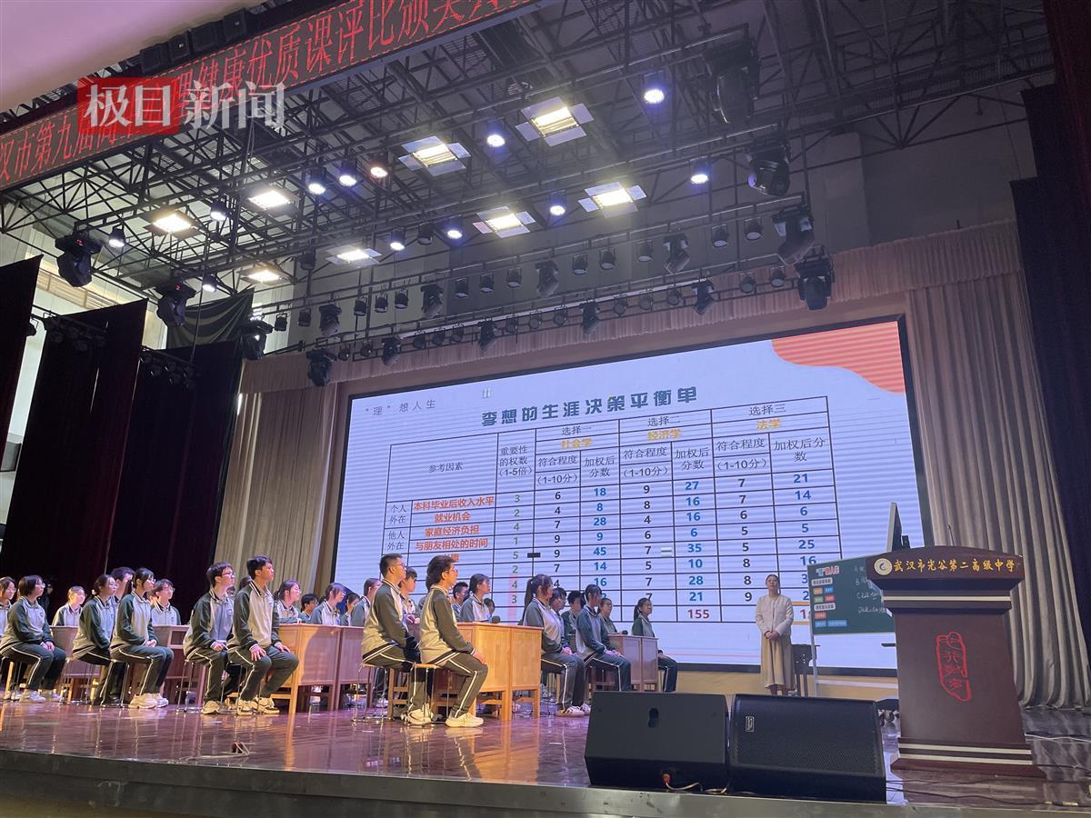 這正是教師們不斷打磨心理課的動力。以《“理”想人生》獲得一等獎第一名的武漢市光谷第二高級中學(xué)心理教師汪冰瀅說,上這節(jié)課的初衷是希望在新高考背景下教學(xué)生學(xué)會使用生涯平衡單這個工具來理性決策、做好生涯規(guī)劃,但“面對難題理性決策”是人生始終需要的,因此她和指導(dǎo)教師不斷往課堂中填內(nèi)容:設(shè)計項目投資小短劇,讓學(xué)生通過四位主人公的言行,認(rèn)識直覺型、理智型、依賴型和回避型等四種決策風(fēng)格,也鼓勵學(xué)生們利用生涯平衡單認(rèn)識自我,學(xué)會用量化的方法去做決策。以《“預(yù)”見愛情》獲得一等獎第五名的華中科技大學(xué)附屬中學(xué)心理教師劉文雯說,她的課程目標(biāo)是“幫助學(xué)生提升異性交往的能力,理性應(yīng)對青春期的愛情困惑”,但這個度不好把握,若變成說教反而易遭學(xué)生反感,所以她干脆把課變成劇情選擇游戲,學(xué)生的每個選擇會導(dǎo)向不同劇情和結(jié)局,在思考和辯論中,他們自己會得出答案。