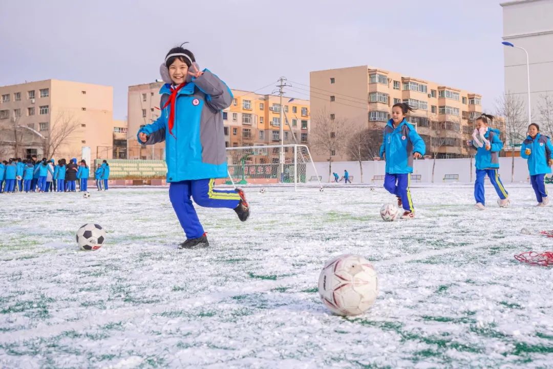12月11日,昌吉市第五小學(xué)學(xué)生在踢雪上足球。