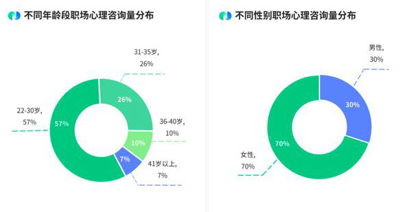 《報(bào)告》顯示,職場(chǎng)心理問(wèn)題咨詢?nèi)巳褐饕性?2-35歲,Z世代更重視心理健康;職場(chǎng)心理咨詢的性別分布數(shù)據(jù)中,女性用戶占比達(dá)70%,遠(yuǎn)高于男性;僅19%受訪職場(chǎng)人表示企業(yè)提供了心理咨詢服務(wù),超六成受訪職場(chǎng)人期望企業(yè)可以提供心理健康日或假期。