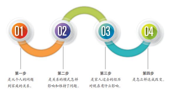 米鈕秦等人編寫的《家庭與夫妻治療:案例與分析》把家庭治療步驟做了一個(gè)梳理,作為臨床上的操作性理論和手法,也稱為四步地圖。