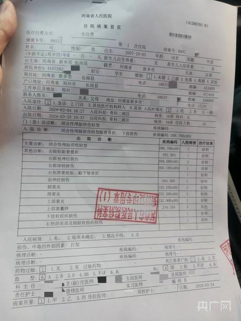 林兵介紹,今年2月,16歲的兒子就讀于鄭州市一所中專(zhuān)學(xué)校。2月28日,班級(jí)通知兒子前往一個(gè)教室,但孩子剛?cè)雽W(xué)什么都不知道,問(wèn)是否需要帶本子,有個(gè)同學(xué)說(shuō)了句“問(wèn)那么多干什么?”,孩子說(shuō)了句“要你管我!”