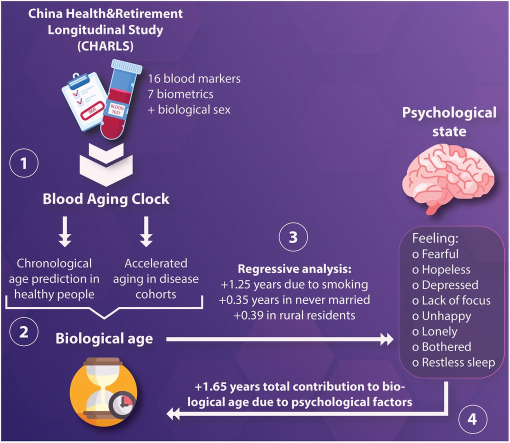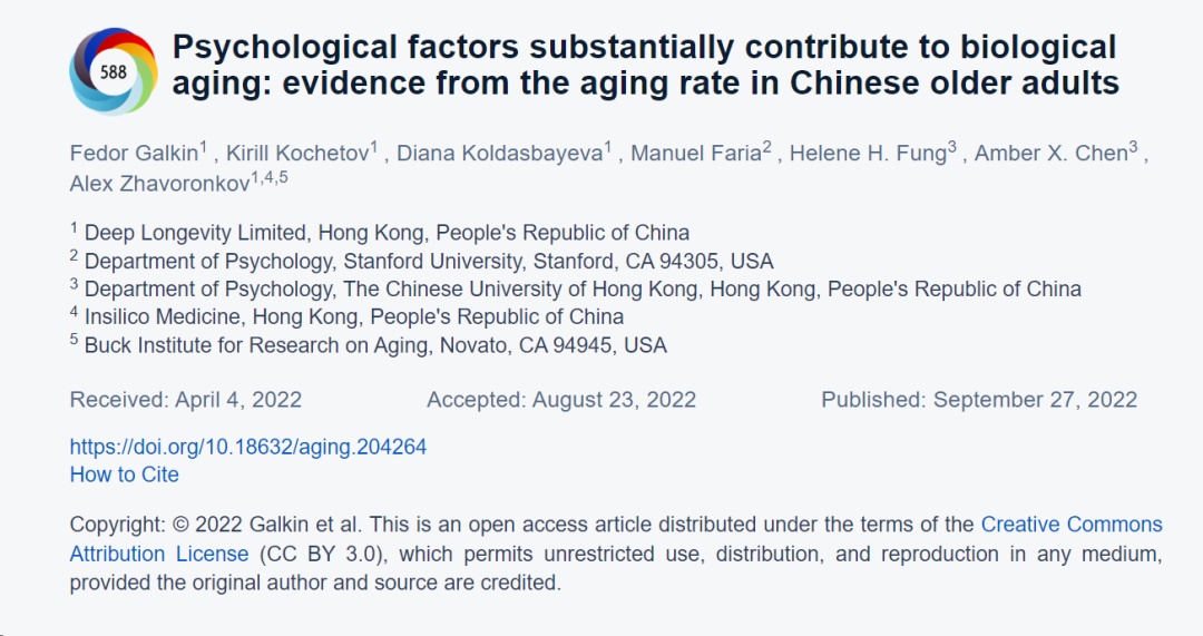 近日,來自香港中文大學(xué)、斯坦福大學(xué)等多家研究機構(gòu)的科學(xué)家在《aging-us》期刊上發(fā)表題為“psychological factors substantially contribute to biological aging: evidence from the aging rate in chinese older adults”的研究論文。該研究開發(fā)了一種新型衰老時鐘,根據(jù)中國健康與退休縱向研究(charls)的血液檢測數(shù)據(jù),確定中國成年人的生物年齡。事實證明,生物體的衰老不僅是由生理因素決定的,還在一定程度上受到心理狀態(tài)和社會地位的影響。