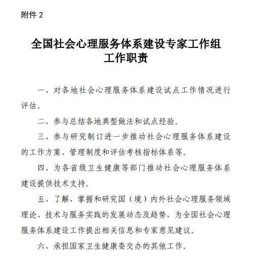 2.全國(guó)社會(huì)心理服務(wù)體系建設(shè)專(zhuān)家工作組工作職責(zé)