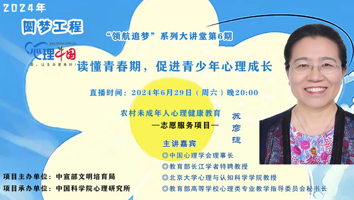 2024年“圓夢工程”——農(nóng)村未成年人心理健康教育志愿服務項目,由中宣部文明培育局委托中國科學院心理研究所國民心理健康評估發(fā)展中心負責具體實施?!邦I航追夢”系列大講堂作為該項目的重要組成部分,將邀請心理、教育、醫(yī)療等相關領域的資深專家,連續(xù)開展20場左右的線上公益直播講座,為廣大農(nóng)村未成年兒童及其家長和教師提供在線心理健康知識科普與問題解答。(中國網(wǎng)心理中國網(wǎng)址:http://m.sl3server.com/)
