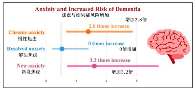 在平均10年的研究期間發(fā)現(xiàn),慢性焦慮和新發(fā)焦慮的人與癡呆癥風(fēng)險(xiǎn)增加有關(guān),患有慢性焦慮、新發(fā)焦慮的人,與患癡老年呆癥的風(fēng)險(xiǎn)高2.8倍和3.2倍相關(guān)。