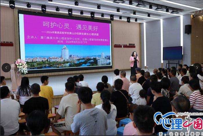 中國網(wǎng)心理中國訊 為進(jìn)一步構(gòu)筑家校合作平臺,發(fā)揮家校共育優(yōu)勢,幫助一年級新生邁好小學(xué)生活第一步,8月31日下午,福建教育學(xué)院附屬集美實(shí)驗(yàn)學(xué)校美山分校家長學(xué)校開展主題為“心適應(yīng),新啟航”的一年級新生家長心理健康主題專場培訓(xùn)。
