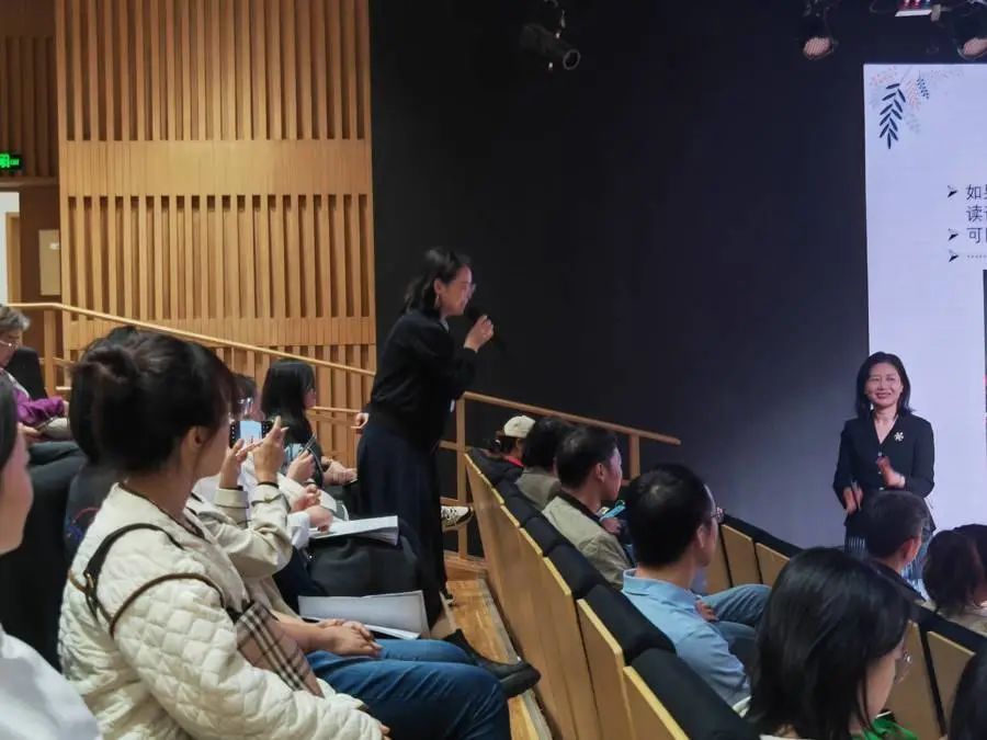 “請你和身邊的人握個手,并由衷地表揚(yáng)他一句?!薄罢埡蜕磉叺娜斯餐鲆粋€愛心的手勢?!薄v座現(xiàn)場,孫曉青以游戲暖場,聽眾們在游戲互動中理解“雙向奔赴”的含義。