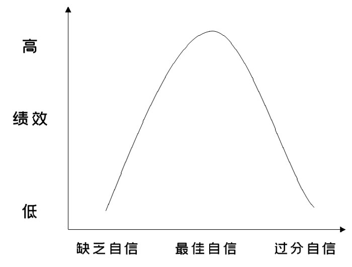 從上圖可以看出,一個人缺乏自信或過分自信,都將影響成績的發(fā)揮,所以,保持個人最佳的自信水平,是一個人成功的基石。