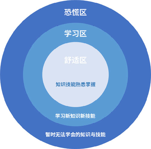 (5)在其他領(lǐng)域取勝:如圖所示,一個人不可能掌握所有的知識和能力,熟悉的知識和技能在我們的舒適區(qū)里。在這里,我們有較高的自我效能感。當我們需要面對和發(fā)展新知識和新技能時,可以將自己在舒適區(qū)積累的自我效能感,遷移到學習區(qū),幫助我們更好地學習。此外,當我們擅長的領(lǐng)域越來越多時,我們的舒適區(qū)也會不斷擴大,我們的自信心也越來越強。