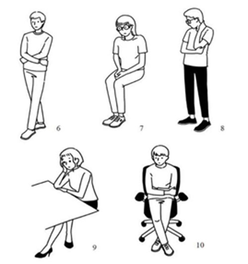 高能量姿勢指只要你保持這個姿勢兩分鐘,就能獲得真正的自信。你的睪酮素水平會提高20%,會更愿意冒險,同時,你血液中的皮質(zhì)醇含量會降低15%,而皮質(zhì)醇常被稱為“壓力荷爾蒙”。低能量姿勢指弱勢心理者喜歡把身體蜷縮起來,試圖占用更小的空間。