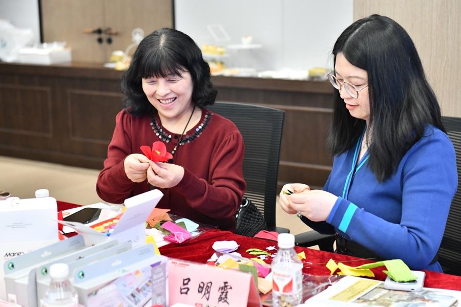 為了讓現(xiàn)場(chǎng)參與者更直觀地感受藝術(shù)療愈的魅力,上海視覺藝術(shù)學(xué)院設(shè)計(jì)學(xué)院教師姜玥婷帶領(lǐng)大家,投入到馬利藝術(shù)療愈課程——制作虞美人手工紙花。以馬利產(chǎn)品為材料,裁剪、折疊、粘貼,一朵朵立體紙藝花卉栩栩如生。從色彩搭配到形態(tài),每一朵“虞美人”既是藝術(shù)表達(dá)的載體,更是情緒投射的窗口。