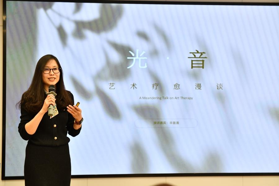 上海音樂學(xué)院數(shù)字媒體藝術(shù)學(xué)院副教授畢盈盈在主題分享“光·音——藝術(shù)療愈漫談”中指出,藝術(shù)療愈不僅僅是一種心理干預(yù)手段,更是一種自我探索與表達(dá)的方式。畢教授從視覺與聽覺的應(yīng)用展開,深入淺出地解析了藝術(shù)療愈的理論基礎(chǔ)與實(shí)踐價(jià)值。