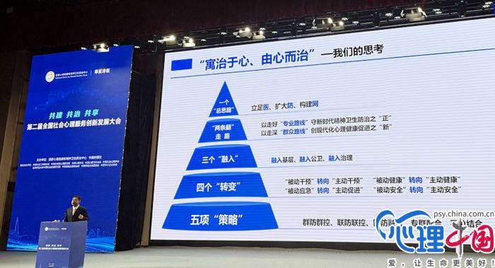 在題為《深刻把握中國式現(xiàn)代化對心理健康的需求,推動新時代心理健康事業(yè)創(chuàng)新發(fā)展》的大會主旨演講中,國家心理健康和精神衛(wèi)生防治中心黨委書記、主任付強強調,強國必先強心,呼吁構建全社會協(xié)同的心理健康治理體系。要“兩條腿”走路:以走好“專業(yè)路線”守新時代精神衛(wèi)生防治之“正”,以走深“群眾路線”創(chuàng)現(xiàn)代化心理健康促進之“新”。心理健康促進是一項社會工作,需要全社會的參與和努力。政府應通過政策引導和資源投入,構建一個支持心理健康的社會環(huán)境。
