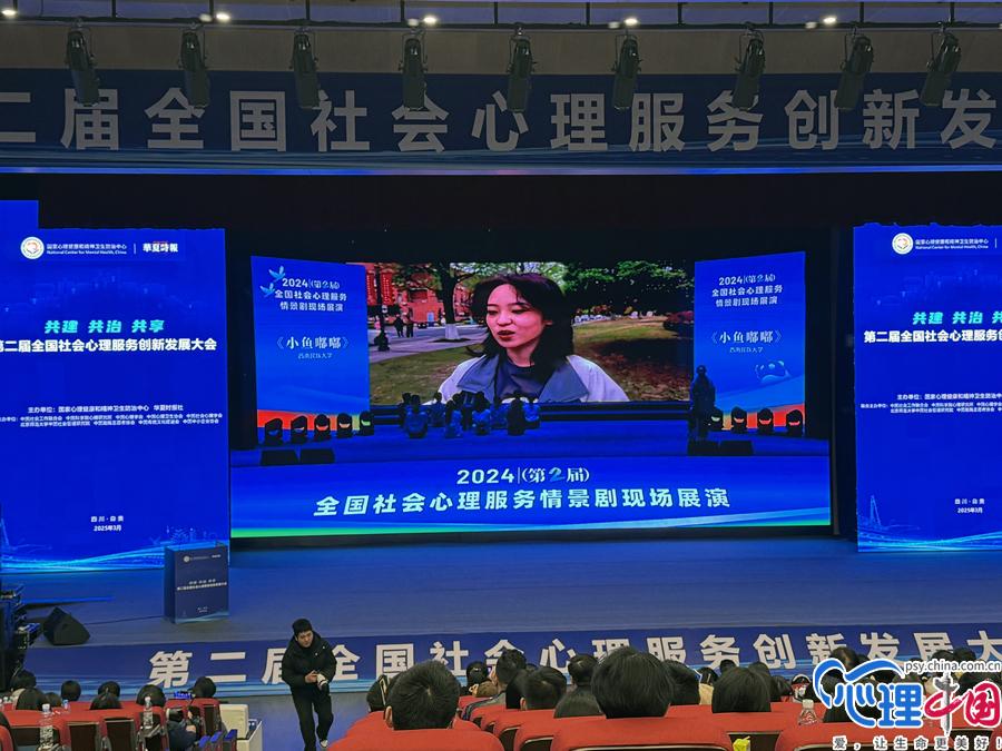 會上,《小魚嘟嘟》《“心”病后的心病》等全國社會心理服務情景劇優(yōu)秀劇目登上舞臺展演,由中央廣播電視總臺《心理訪談》主持人沙瑪阿果主持,為500余名觀眾帶來一場美妙的心理之旅。社會心理服務情景劇為普及心理健康知識、創(chuàng)新服務模式、疏導社會情緒、增強社區(qū)凝聚力、推動個體心理建設和社會治理模式提供了一個別樣生動的探索。