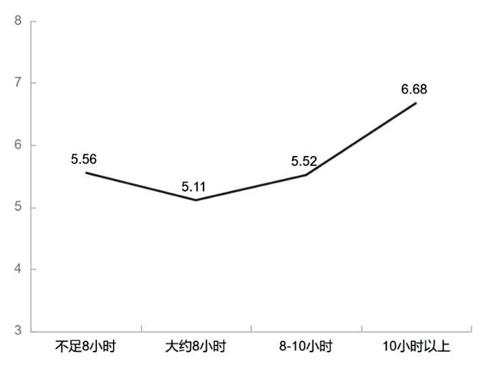 不同工作時(shí)長(zhǎng)下的抑郁水平對(duì)比