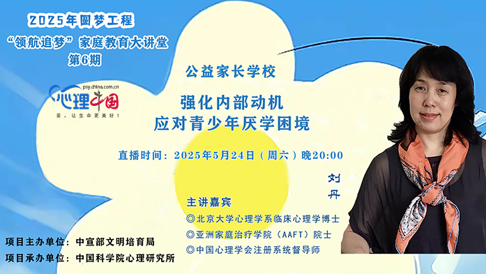 心理中國大講堂5月24日回放:強(qiáng)化內(nèi)部動(dòng)機(jī) 應(yīng)對(duì)青少年厭學(xué)困境2025-05-23