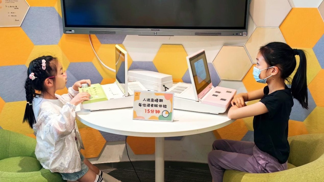 在三樓兒童借閱區(qū)名家書屋,由上海華東師大科教儀器有限公司帶來的“smart魔盒挑戰(zhàn)”在周末面向公眾開放。小朋友們可通過學(xué)習(xí)品質(zhì)多維輔導(dǎo)系統(tǒng)自主體驗(yàn),測(cè)試注意力、記憶力、思維力,挑戰(zhàn)雙手協(xié)調(diào)能力,幫助了解自己的能力特點(diǎn),發(fā)掘心理潛能,從而改進(jìn)學(xué)習(xí)策略。