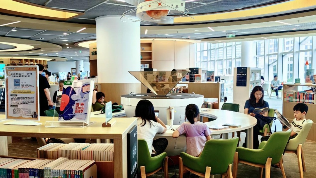 在三樓兒童借閱區(qū)h書架展區(qū),小朋友們饒有興致地閱讀“心理學(xué)與生活”科普知識(shí)展板,跟隨有趣的文字走進(jìn)心理學(xué)小課堂,解鎖日常行為背后的科學(xué)奧秘?!洞蟊娦睦韺W(xué)》雜志為親子家庭準(zhǔn)備了一份特別的書單。雜志聯(lián)合國內(nèi)多家出版社精心推薦了30余種心理學(xué)科普讀物,幫助孩子們認(rèn)識(shí)自己、交結(jié)朋友、收獲快樂能量,也幫助家長朋友們用心理學(xué)知識(shí)更好地理解孩子,提升家庭教育藝術(shù),從而支持孩子從容成長。