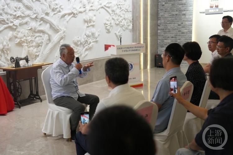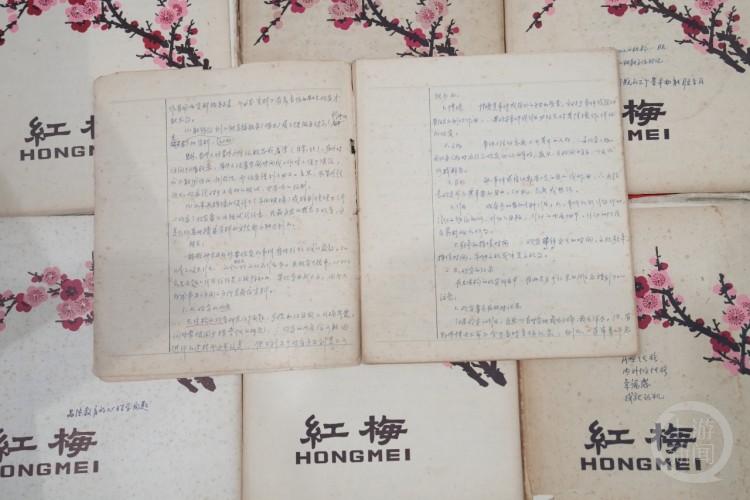“這是40多年前,他在上面寫下第一部心理學(xué)專著的縫紉機(jī),這是寫滿密密麻麻學(xué)術(shù)筆記的紅梅筆記本,這是一部書稿的花臉稿……”