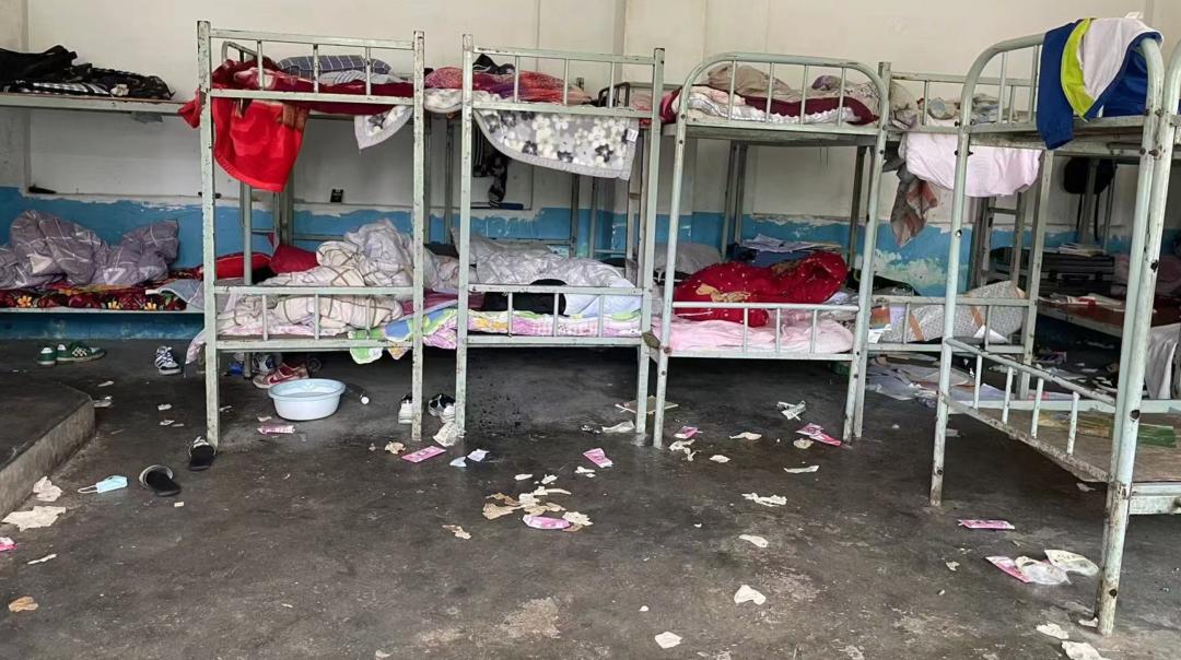 2019年的暑假,我們也去過這個(gè)學(xué)校,當(dāng)時(shí)看見宿舍也很臟,校長解釋說是因?yàn)楫厴I(yè)放假了,學(xué)生撕書本到處扔,所以很臟。但這次去,明明學(xué)校在上課,還是這么亂。這根本不是花錢能解決的,真的跟學(xué)校管理關(guān)系很大。
