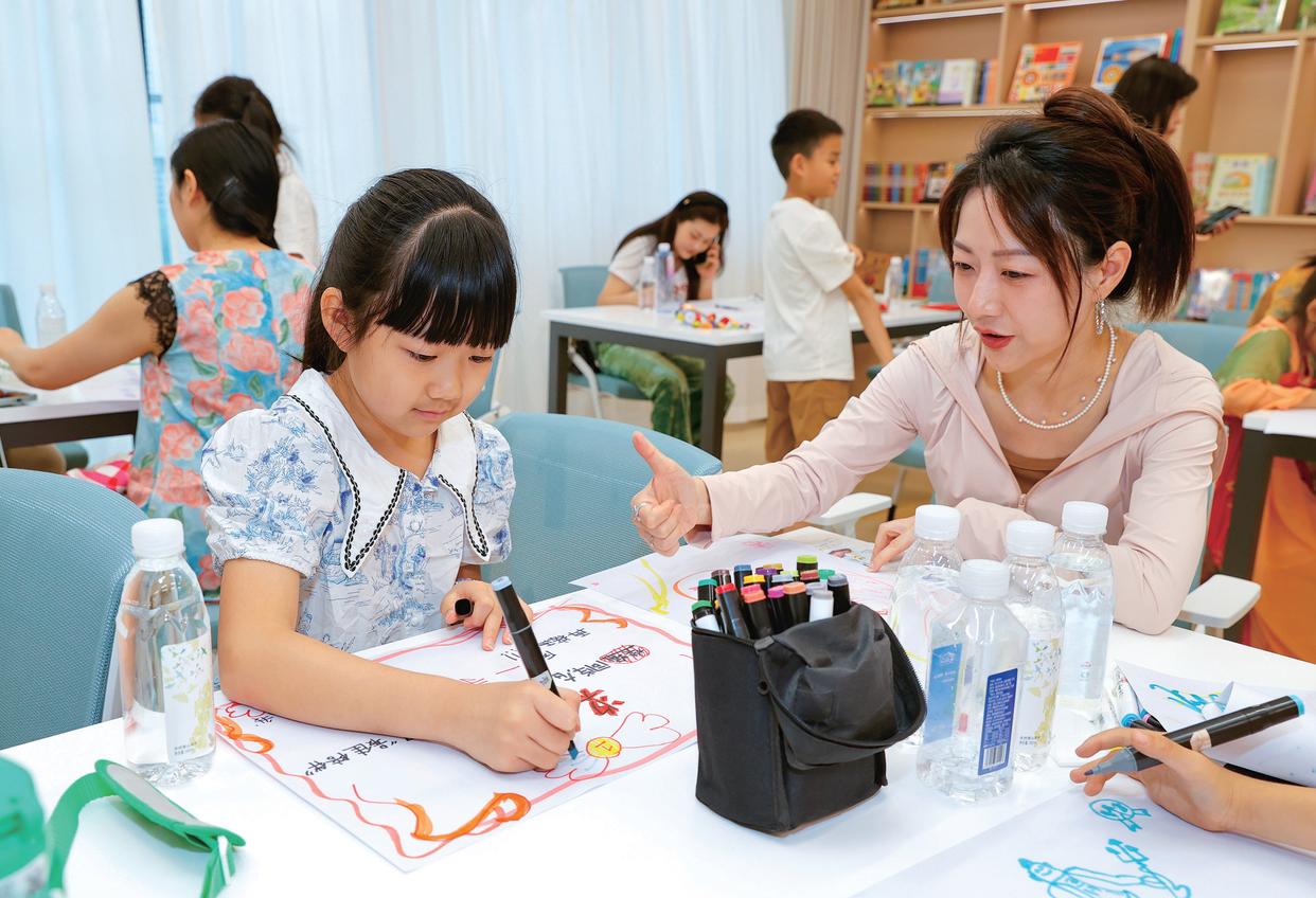 2024年6月1日,在四川省婦女兒童中心的四川省婦女兒童心理健康服務(wù)中心,家長(zhǎng)帶著孩子參加親子心理團(tuán)輔活動(dòng)(沈伯韓/攝)