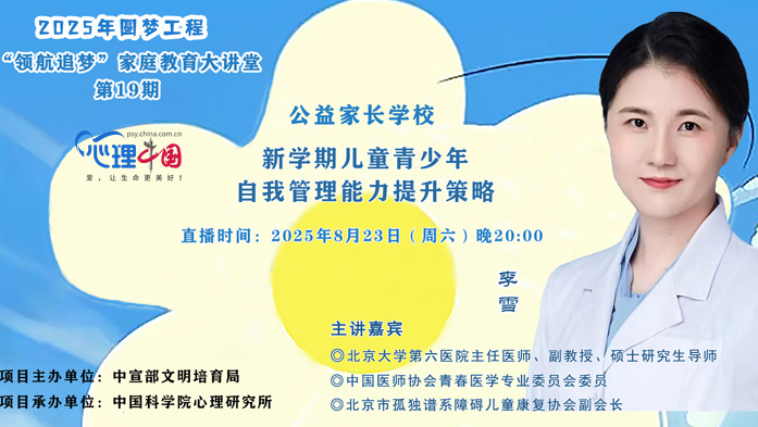 心理中國(guó)大講堂8月23日回放:新學(xué)期兒童青少年自我管理能力提升策略