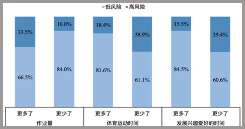 報告顯示,近一半小學生作業(yè)量減少;超過半數(shù)的初中生和小學生體育運動時間增加;近三分之二的小學生發(fā)展興趣愛好的時間增加。 報告指出,社會、學校和家庭要更加重視高中生的心理健康狀況,完善健全高中學生心理健康監(jiān)測與預(yù)防工作。